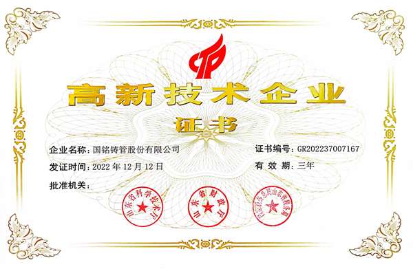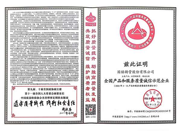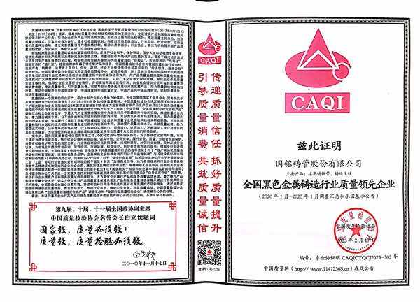 在半個多世紀的崢嶸歲月中,國銘鑄管依托雄厚實力和專業技術品質,堅持“技術提升質量,品質鑄就品牌,創新推動發展”的企業宗旨,為客戶提供滿意的產品和服務